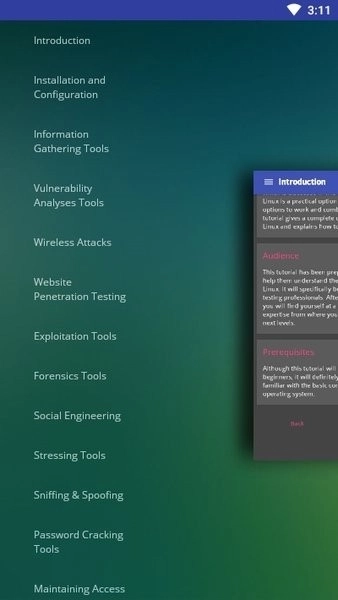 探索应用程序里的进阶内容,深入了解渗透测试、无线安全等领域的更多知识。