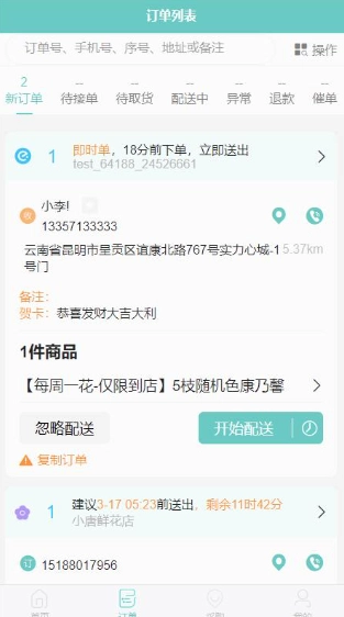 2、发布配送:商品准备妥当后,即可发布配送订单,以便骑手迅速开展配送工作。