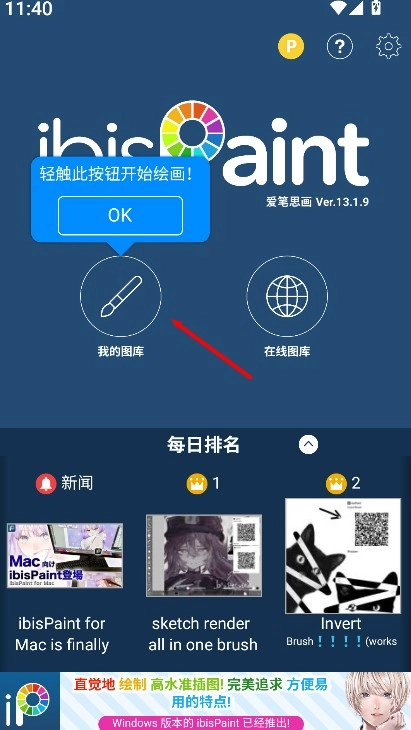 1、轻点绘画键就能进入创作界面,迅速开启新的绘画流程,便于随时着手创作。