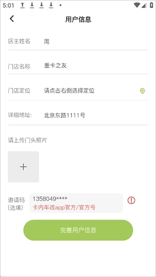 2、输入友商老板的姓名、门店等信息,上传相关照片