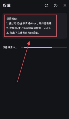 4、使用投屏功能时,需确保手机与投屏设备处于同一WiFi网络环境下,待系统搜索到对应设备后,连接设备即可进行播放。