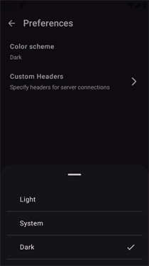 4、可以看到给出了三种颜色,分别是light明亮、system跟随系统、dark暗黑模式。