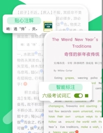 阅读时能够开展智能标注,以此在阅读过程里积累字词。