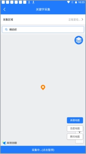 3、此时软件会依据你的位置,搜索周边的关键字相关资源,采集完成后便会将其罗列在地图上,以便你查看。