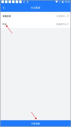 4、点击“行业客源”选项,此操作的目的是通过选定对应的行业来获取相关资源,之后再点击“开始采集”按钮即可。