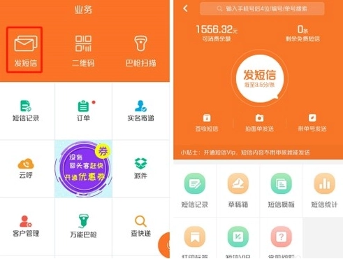 软件设有每日登录赠送免费短信的功能,快递员能够便捷地给客户发送派件通知。