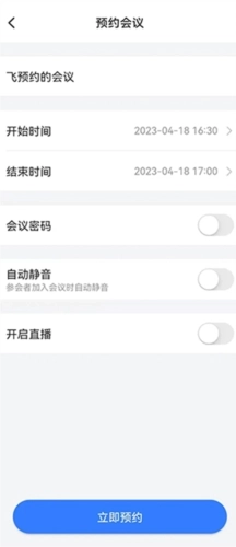 2、设置好会议的开始和结束时间,点击立即预约。