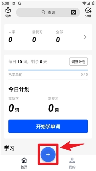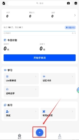 2、打开软件首页后,点击右下角的加号按钮来添加新的学习内容。