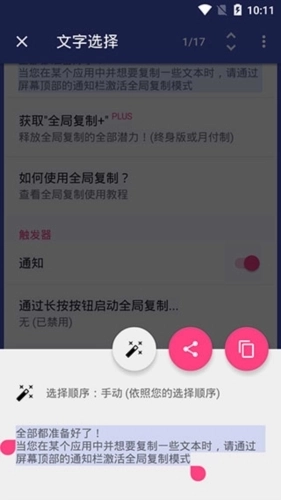 3、开启全局复制模式后,选中你想要复制的文本即可,操作就是如此简单!