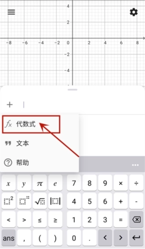1、启动GeoGepaCAS计算器并进入软件界面,在页面左侧找到【代数区】选项,点击该选项后再点击其旁的加号按钮,此时会弹出三个选项,选择其中的【代数式】即可。
