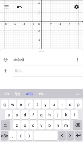 4、随后我们上方的文本框里便会出现一个【sin】,接下来需要点击【ABC】,在这个窗口中输入【x】,这样就能在文本框中得到【sin(x)】了。