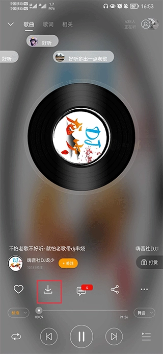 三、在播放歌曲界面中点击键即可