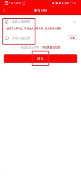 5、最后输入修改后的新密码,获取验证码后点击确认按钮即可完成操作