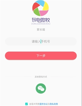 1、打开东电微校家长端使用手机号或微信注册登录;