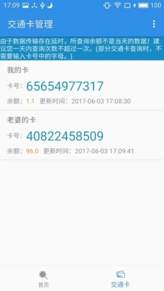 3、进入首页,可以快速的查询各种公交卡的信息