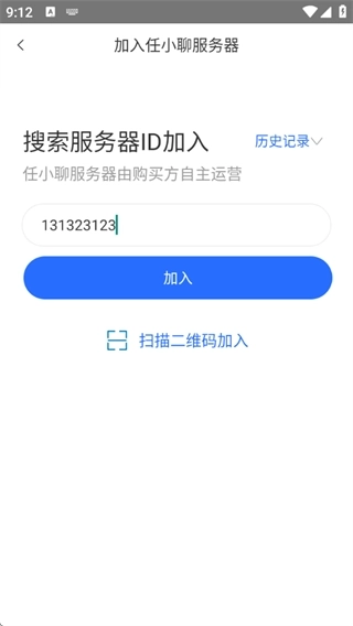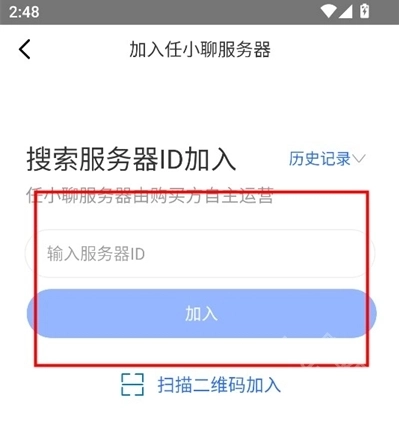 2、若想加入任小聊天,需通过搜索服务器id并点击相应结果来完成加入操作。