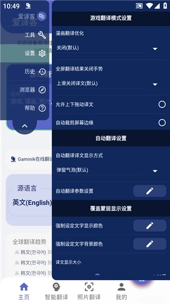1.自动翻译默认开启点击屏幕后的延迟触发功能,且延迟时长支持调整;