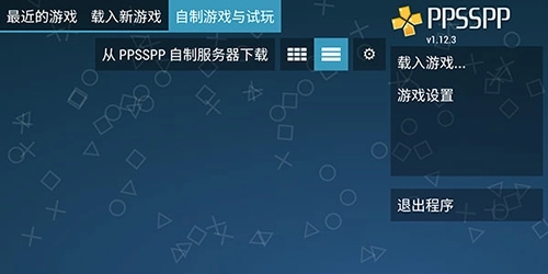 1、第一步我们点击顶部的【自制游戏与试玩】按钮,接着选择【从PPSSPP自制服务器】选项。