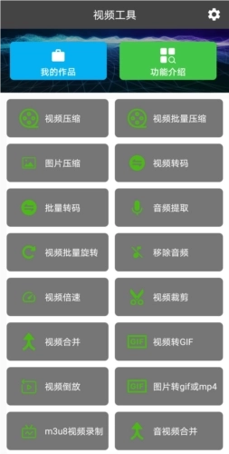 集影视频工具箱是一款由合肥星栈科技有限公司发行的专门为短视频拍摄的用户们使用的视频处理软件,该软件是有很多的功能,包括视频压缩、图片压缩、视频转码、音频提取、移除音频、视频倍速、音视频合并、视频转GIF、视频倒放、图片转GIF或者mp4、m3u8视频录制、音视频合并等功能,这些都是可以帮助用户快速的进行转化的。
