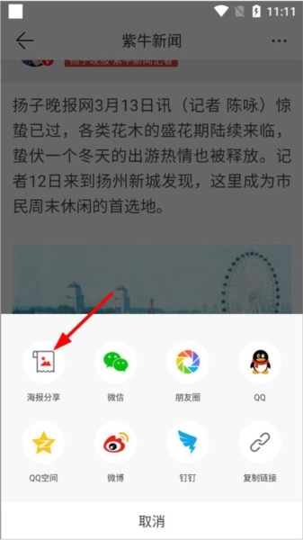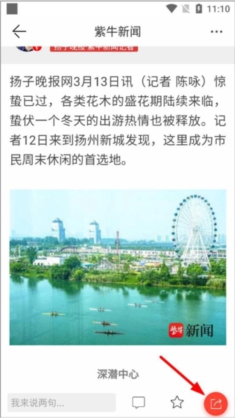 2、进入新闻页面,用户可查看新闻标题、时间、内容、图片等,点击右下角分享按钮;