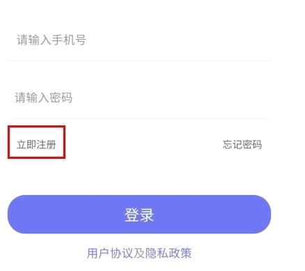 1、打开软件进入登录页面,有账号的可以直接登录,没有的点击立即注册按钮;