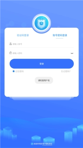 1、登录操作:启动智慧卫生监督应用,进入登录页面,输入您的账号与密码完成登录。