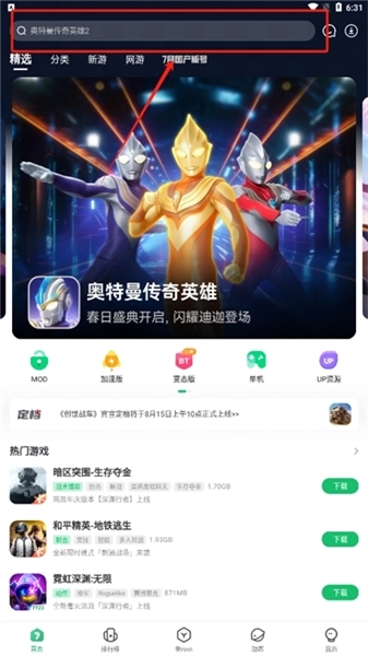 首页每日实时更新百款新游,覆盖正版、、BT等多元资源,同步推送游戏圈最新资讯。顶部搜索栏支持关键词联想的智能搜索,输入游戏名即可快速定位;下方还设有基于偏好的个性化推荐,新游、热游一目了然,轻松告别游戏荒。
