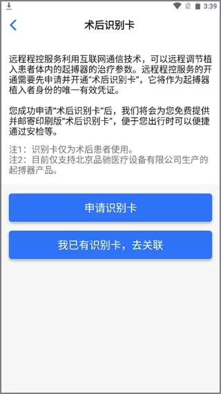 请注意:术后识别卡仅限已植入品驰公司生产的系列起搏器产品的用户使用。