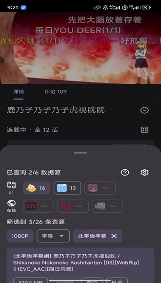 搜索资源:在搜索栏输入动漫名称,选择需要的资源。