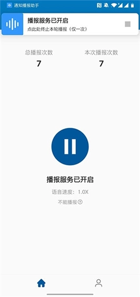 1、安装并打开软件后,点击中间的按钮即可启动播报服务。