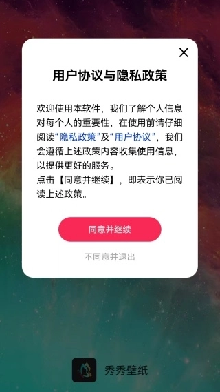 2、在当前界面中,能看到隐私政策与用户协议,大家直接点击同意并继续即可。