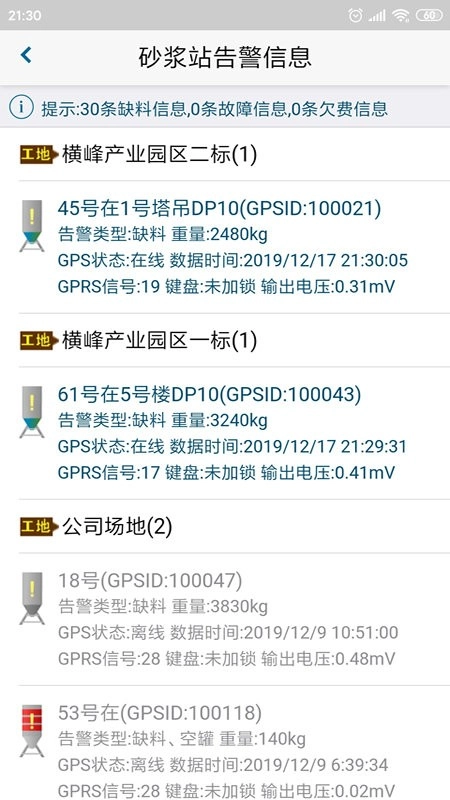 这款软件是专门针对干粉砂浆站生产调度场景开发的移动端应用。它支持远程查看砂浆罐的各项信息,包括实时重量、运行状态、具体位置、参考地址、所属工地详情以及联系人信息;还能通过地图直观展示砂浆罐的位置分布与状态情况。此外,软件具备远程操控设备运行、远程配置参数、远程重启设备等功能,同时提供用户信息修改、密码更改、用料数据统计和入料数据统计等实用功能。