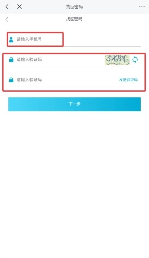 3、输入用于注册的手机号,获取短信验证码,完成验证后就能设置新密码了。
