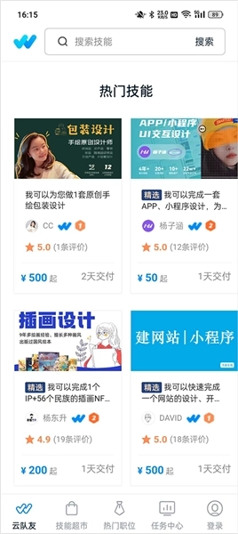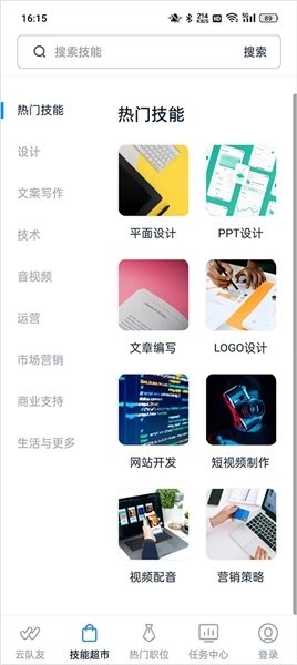 2、进入“技能超市”板块,搜索自己擅长的技能领域,快速找到合适的任务进行接单。