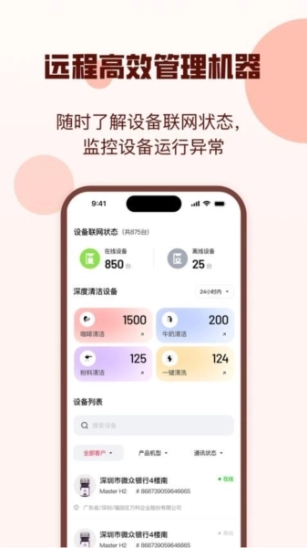 2、接着还能对设备的运行异常进行实时监控,便捷管理所连接的咖啡机。