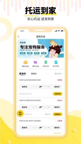 养宠帮宠物托运是一款由常州久沃网络科技有限公司开发的宠物托运软件,专门为养宠用户打造的便捷平台。平台内有着多种强大的功能,一键下单托运宠物,会有专门的业务人员上门送宠物前往正规托运公司。在期间会有专门的驯养师帮助你照顾宠物。航空托运、专车等方式,尽可能的减少宠物应激的可能,可以自由选择托运方式,价格划算且服务优质,有需求的用户快来体验吧!