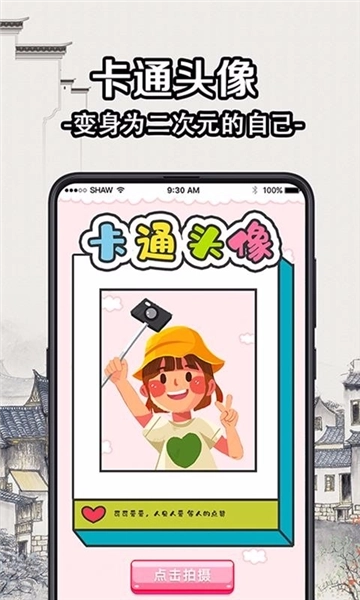 1、若想拍摄自己的图片来获取卡通头像,可进入卡通动漫头像功能,通过拍摄的方式得到;