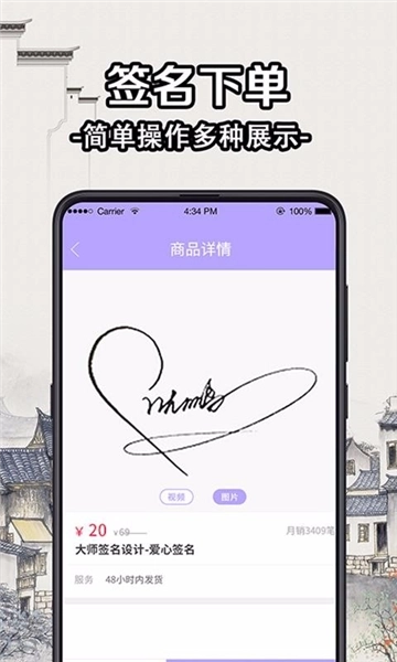 5、查看商品详情里的图片,通过图片了解该签名大致的线条走向和风格特点。