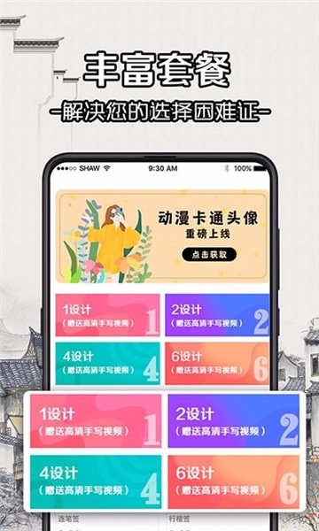 4、还额外提供了有趣的卡通头像服务,大家不仅能获取趣味签名产品,还能得到可爱的卡通头像;