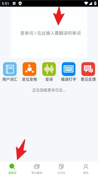 1.在首页点击底部的“查单词”标签,进入单词查询界面后,在顶部的输入框中输入想要翻译或查询的单词。