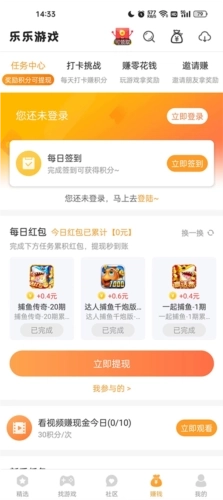 玩游戏,做任务,领现金奖励,更有签到豪礼
