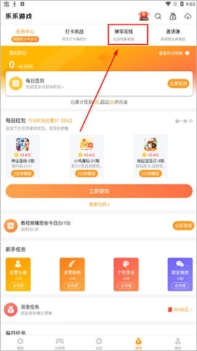 2、点击【赚零花钱】;