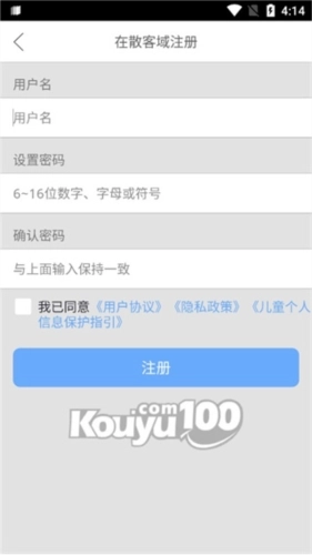 1、首先我们打开口语100应用,还没有账号的朋友可以点击左下方的按钮完成注册;