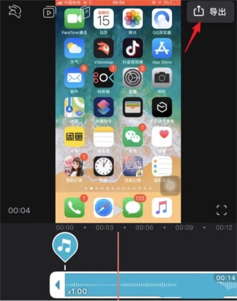 5、剪辑完毕后,点击右上角的导出选项;