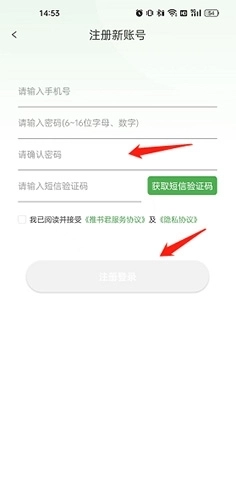 3、填写手机号、密码和验证短信,点击“注册登录”按钮就能完成操作。