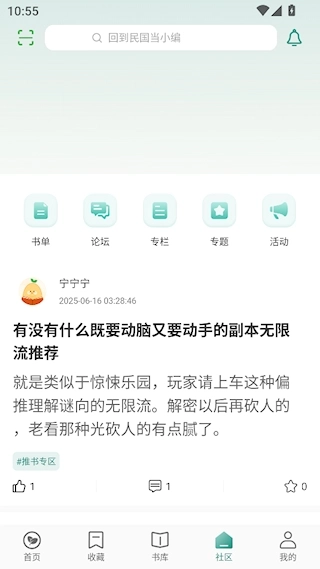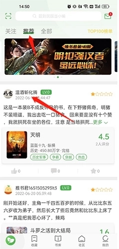 1、启动软件后,点击底部的“社区”选项,接着选择“书单”选项。