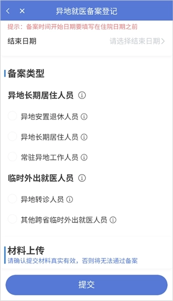注意:备案登记信息里的开始日期必须小于就诊日期!!!