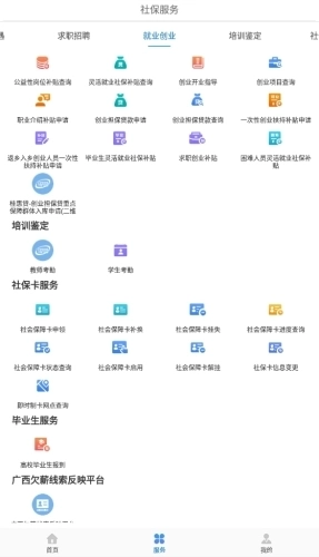 3、在弹出的搜索框中输入本地的人社服务,例如“广西人社服务”。