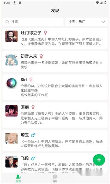 2、登录后进入“发现”页面,既能浏览热门AI角色,也可借助搜索功能查找特定人设角色来进行聊天。