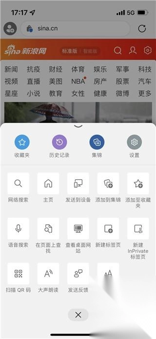 比如下图一中的收藏夹、历史记录等,此外网上滑动还可以看到更加全面的工具,其中就有“大声朗读”这一项;